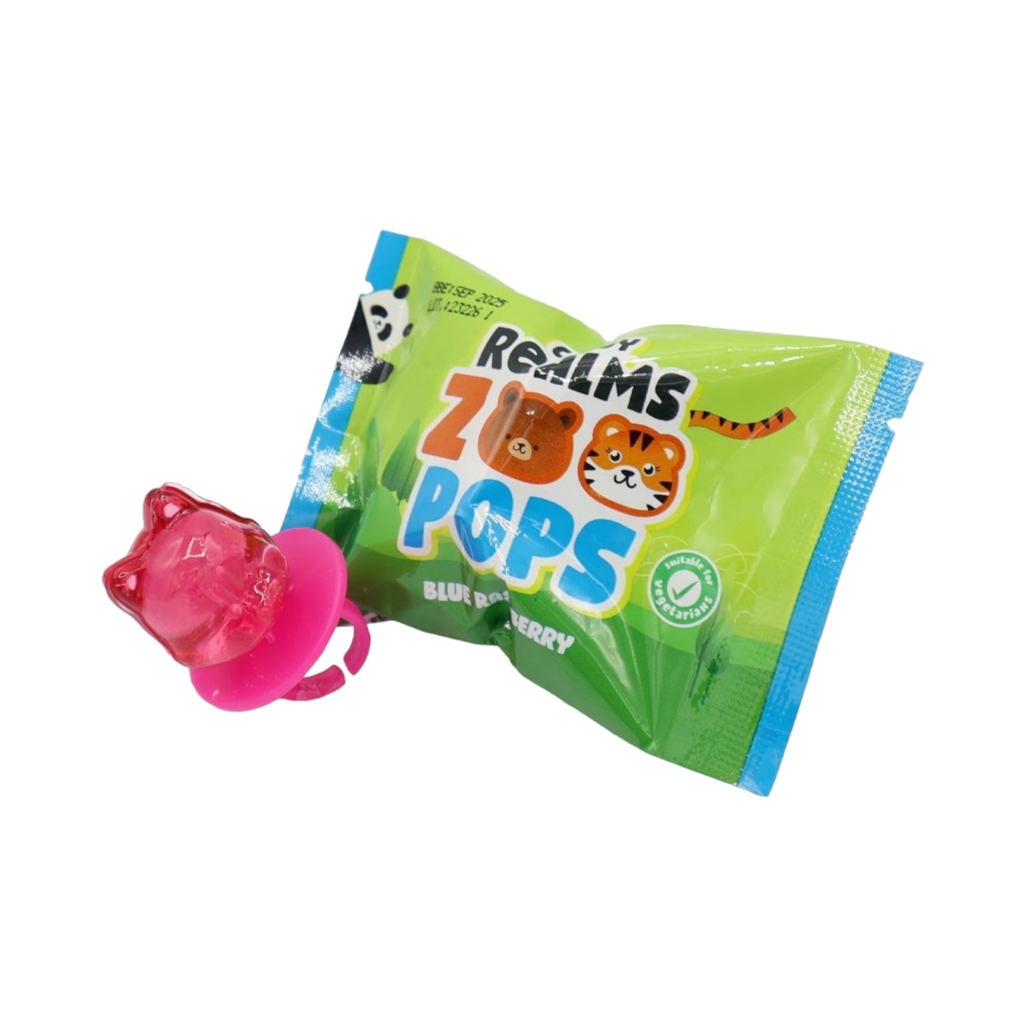 Indulge in a playful treat with Candy Realms Zoo Pops! These tasty fruit-flavored lollipops come in cute animal shapes and four delicious flavors - cola, strawberry, blue raspberry, and cherry. Perfect for kids, these fun lollipops will have them roaring with delight! (11g)