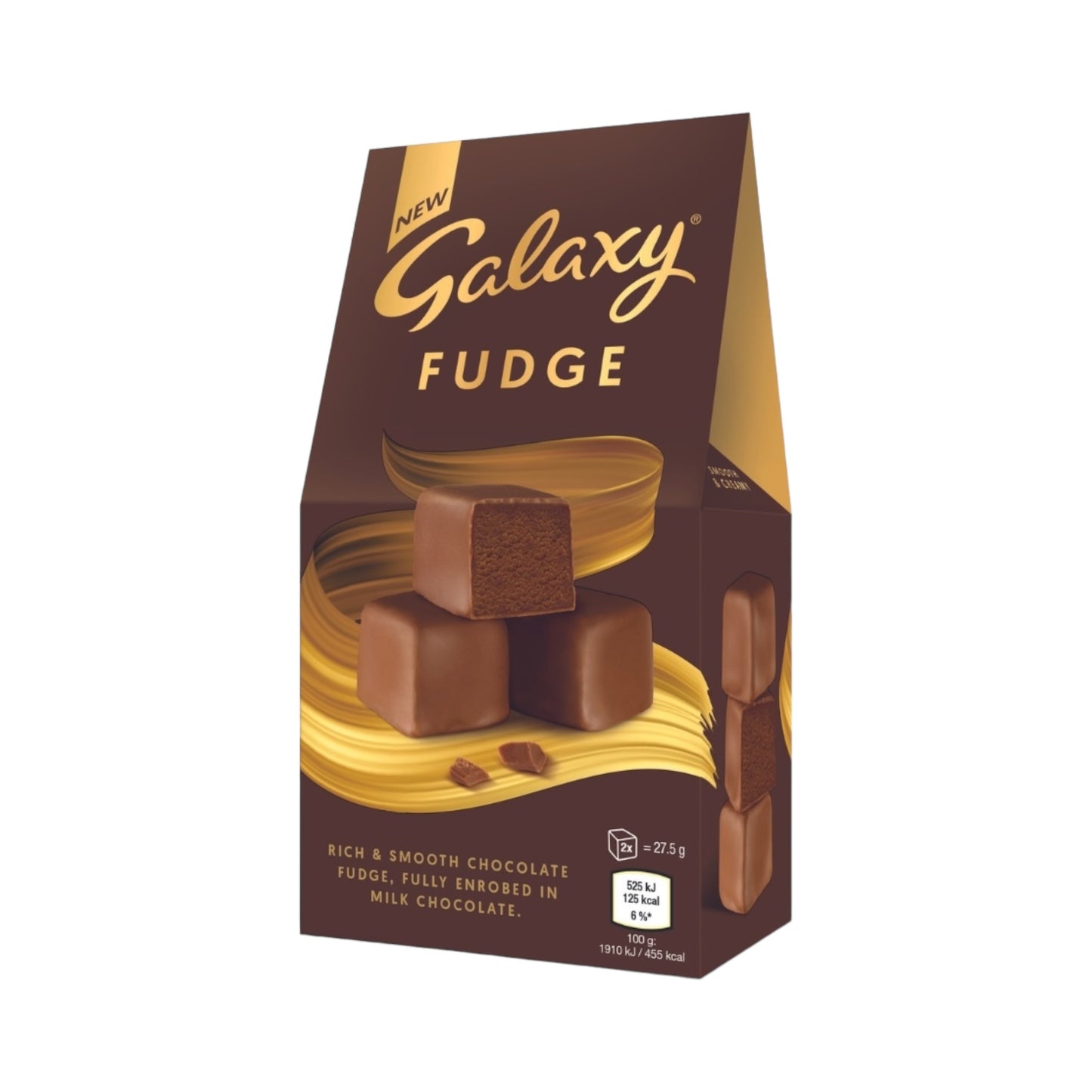 A very special gift for all Galaxy and fudge fans. Galaxy Fudge has a rich and smooth chocolate fudge, fully enbrobed in smooth and creamy Galaxy milk chocolate. A touch of luxury this season from Galaxy.