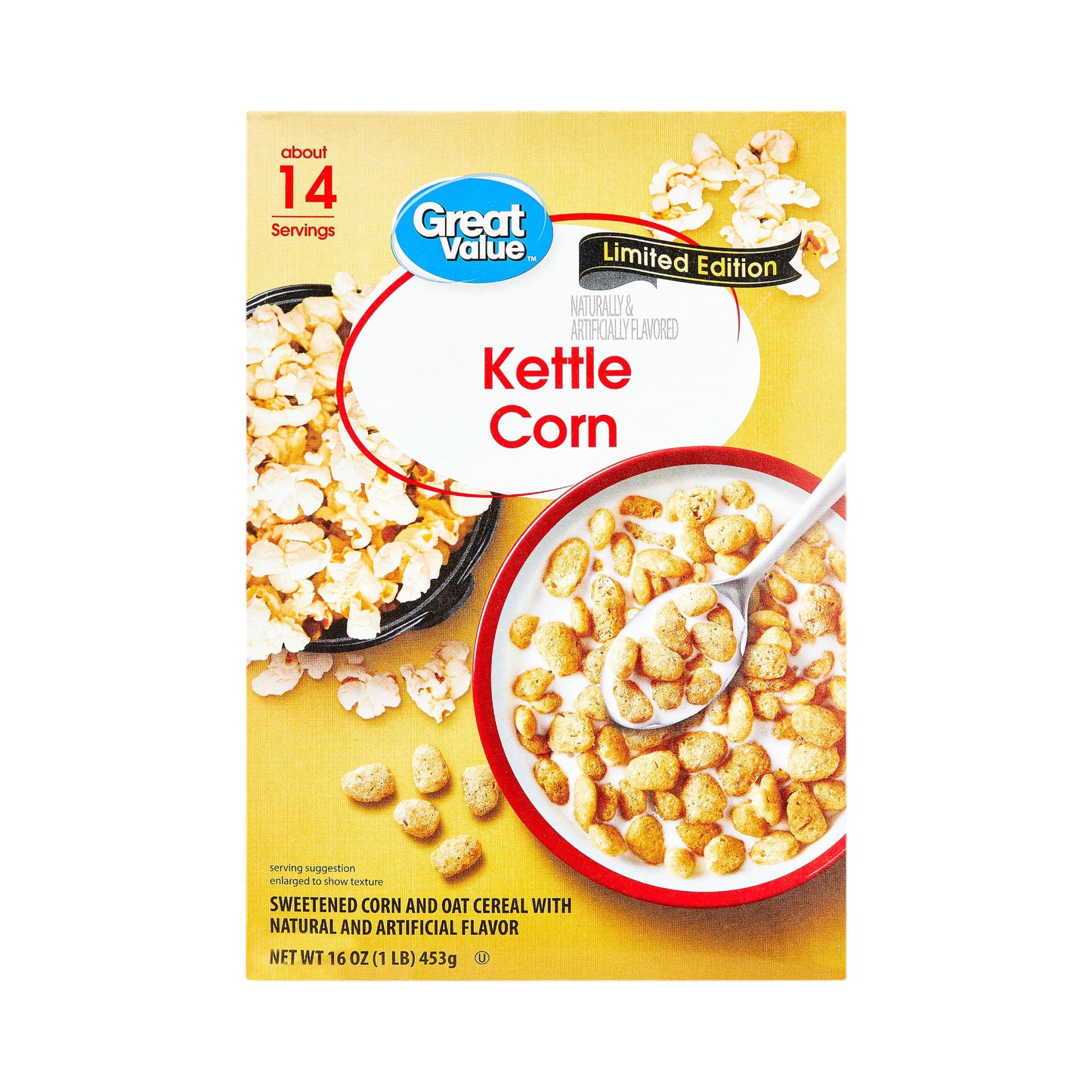 Indulge in the unique, buttery-sweet flavor of kettle corn with Great Value Kettle Corn Cereal. Limited edition and perfect for breakfast or snacking, this cereal is a tasty and healthy choice with only 120 calories per serving. Add it to your desserts or enjoy with milk for a filling breakfast. Start your day off right with Great Value Kettle Corn Cereal.
