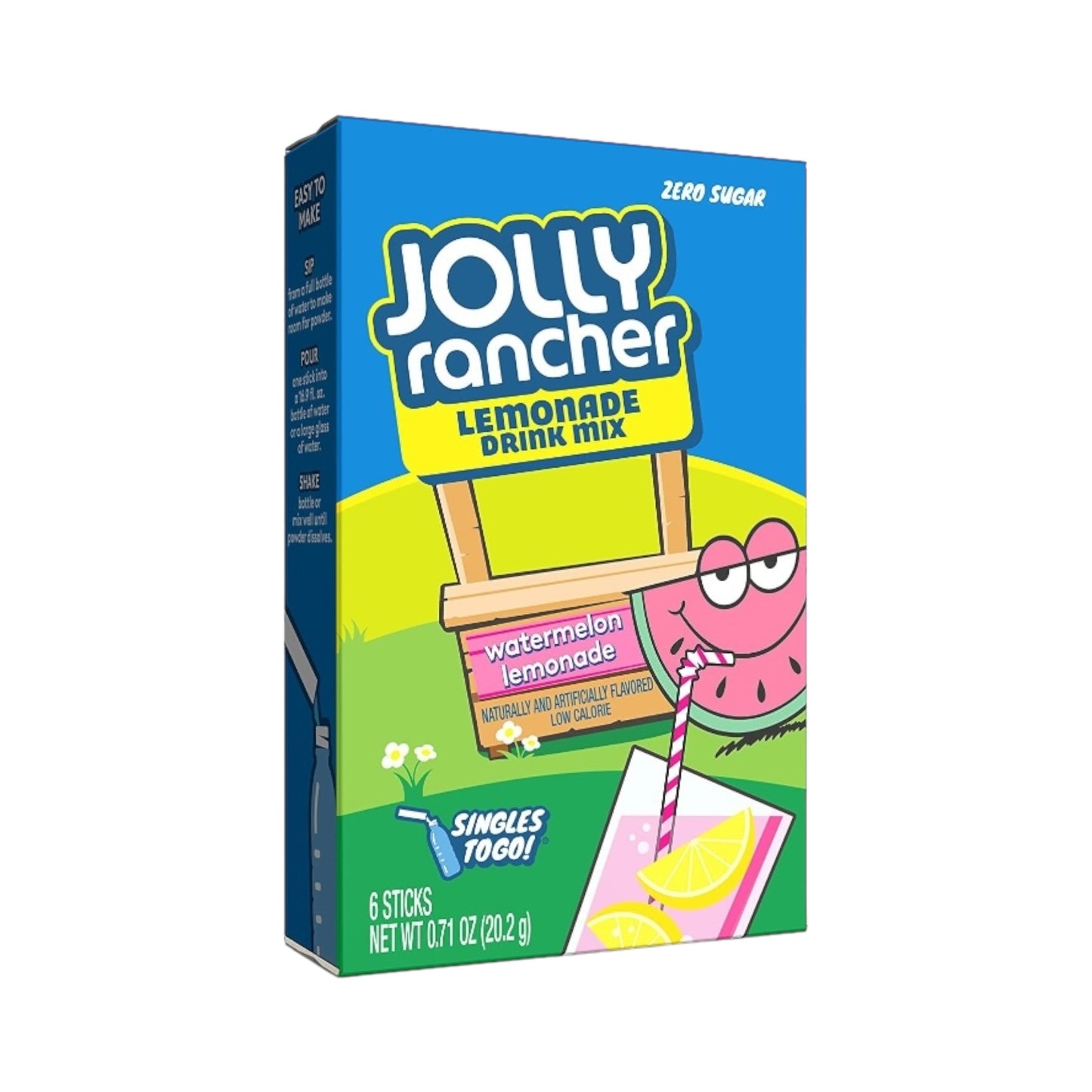 Jolly Rancher, a brand synonymous with vibrant flavors and vivid candies, brings forth their Singles To Go Lemonade Drink Mix in an exciting Watermelon Lemonade variant. This drink mix showcases an invigorating blend that marries the classic tang of lemonade with the sweet, refreshing notes of watermelon, reminiscent of Jolly Rancher's famed watermelon candy.