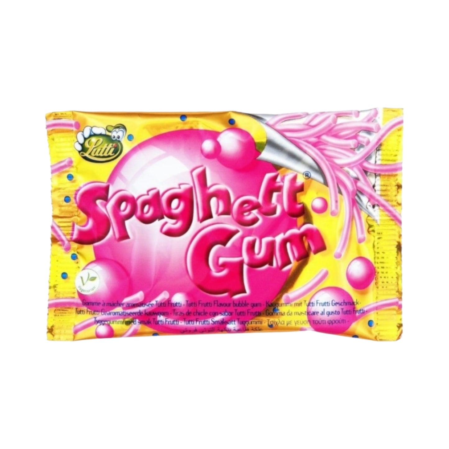 Lutti Spaghett Gum Tutti is a playful and innovative twist on bubble gum that mimics the appearance of spaghetti. This fun gum comes in long, thin strands packed with a vibrant tutti-frutti flavor, combining multiple fruit essences into a delightful, chewy experience. Each package offers a burst of colorful, fruity spaghetti-like gum that can be enjoyed strand by strand or by the handful, providing a unique way to enjoy bubble gum.