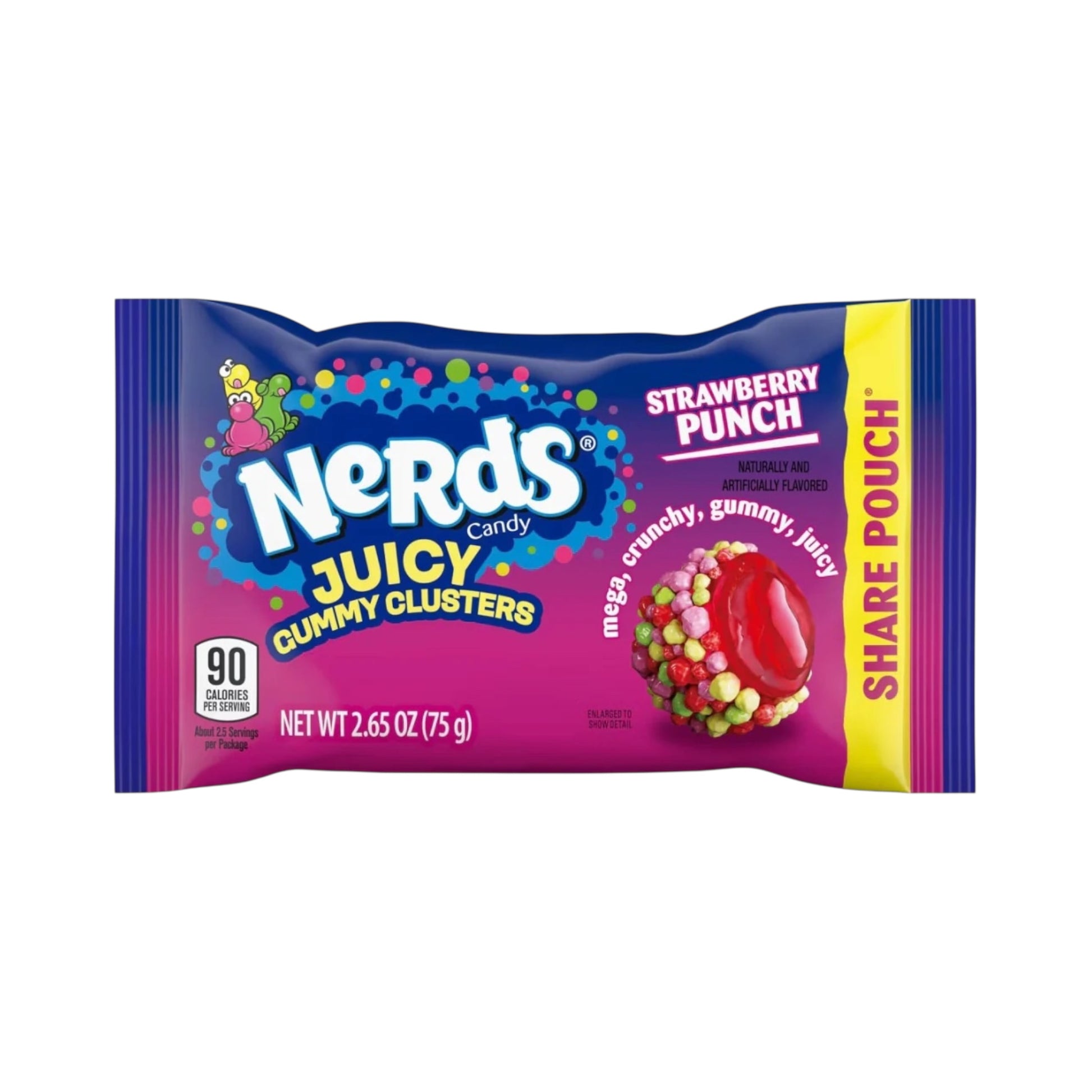 Dive into the ultimate candy adventure with Nerds Juicy Gummy Clusters! Each bite delivers a sensational triple-texture experience: crunchy Nerds on the outside, a chewy gummy layer in the middle, and a juicy burst at the centre. Bursting with bold Strawberry Punch flavour, these colourful clusters transform snacking into pure fun. It's the mega-crunchy, gummy-juicy world that only Nerds can create—perfect for texture lovers and flavour seekers alike. Get ready for a taste sensation that keeps surprising you with every handful!