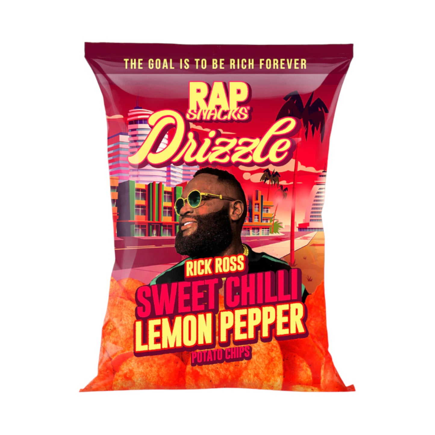 Introducing Rap Snacks Rick Ross Sweet Chili Lemon Pepper, a flavour-packed snack inspired by the legendary hip-hop artist Rick Ross and his exquisite taste. These chips bring together the perfect balance of sweet, spicy chili, and zesty lemon pepper for a truly luxurious snacking experience.