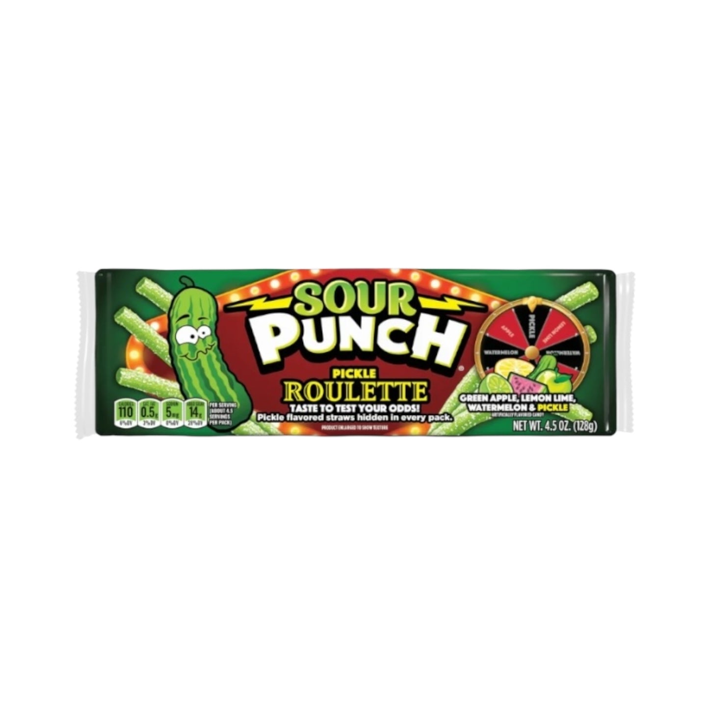 Take your taste buds on a wild ride with Sour Punch Pickle Roulette! This king-size tray offers an exciting mix of bold, tangy flavours paired with a surprising pickle twist. Perfect for those who love sour candy with a unique edge, it’s a must-have for adventurous snackers ready to spin the flavour wheel and embrace the unexpected!