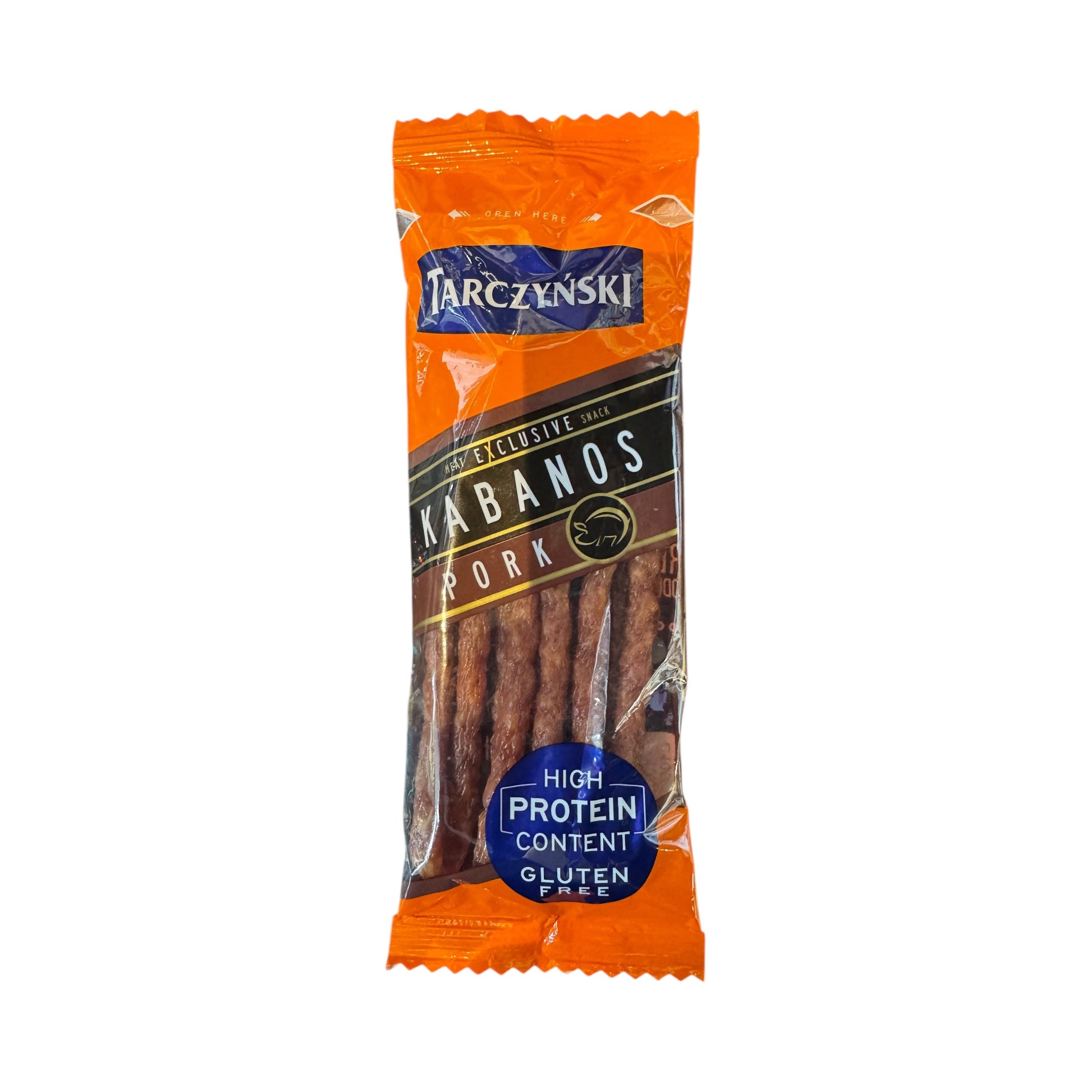 Satisfy your cravings with Tarczynski Kabanos Pork Snacks! Made from top quality pork, these thin kabanos are air dried for a high protein content. These gluten-free snacks are perfect for on-the-go and packed with flavor. (Warning: may induce mouth watering.)