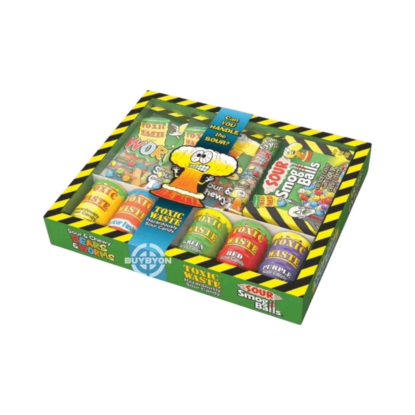 Looking for a gift that's sure to please any sour candy fan? Look no further than the Toxic Waste Gift Set! Packed with a variety of popular sour sweets like Sour Smog Balls and Toxic Waste Sour Candy, this box is the ultimate treat for all ages. Don't miss out on this well-known brand's festive gift set.