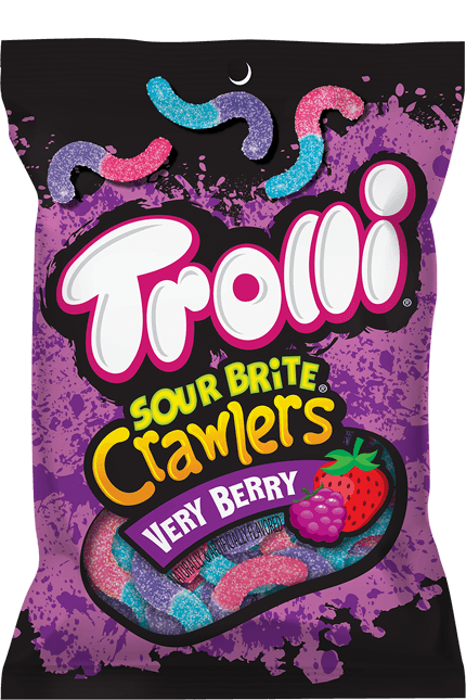 Trolli Sour Brite Crawlers Very Berry are a very berry, tooth-tickling twist on the original sour gummy worm in three fruity flavor combinations: Raspberry-Blueberry, Strawberry-Blackberry and Blue Raspberry-Berry Punch.