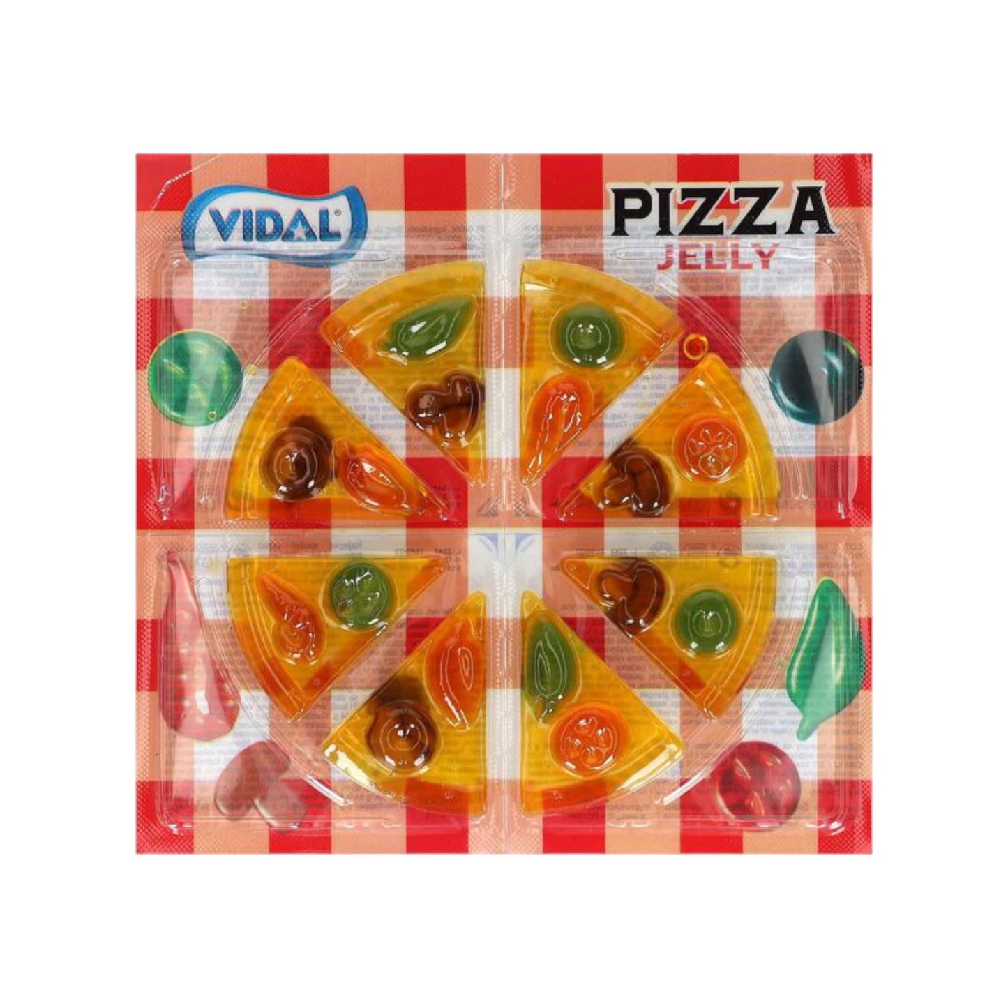 Treat your favourite little foodies to a slice of something sweet! Vidal Pizza Jelly is an 8-pack of delicious strawberry-flavoured jelly slices with all the toppings. Let 'em pizza face – no mess, no fuss!