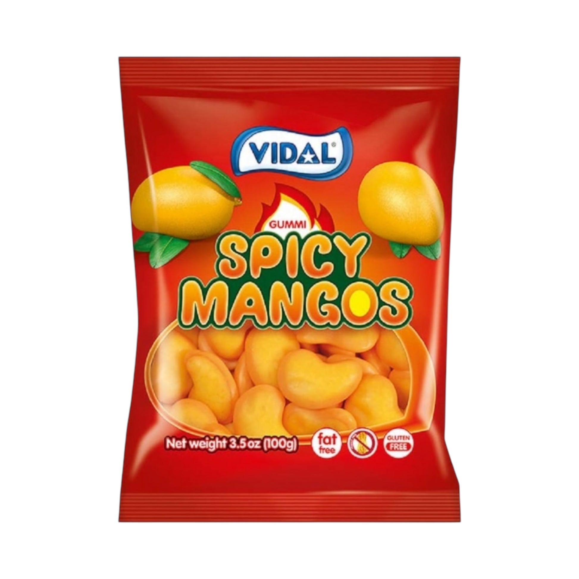 Fire up your taste buds with these cheeky Vidal Spicy Mangos! Each 100g bag is bursting with juicy mango-flavoured gummies that start sweet but finish with a playful spicy kick. These aren't your ordinary sweets – they're the perfect partner in crime for snack time rebels who dare to dance on the wild side of flavor. Grab a handful and experience the tangy-spicy mango mischief that'll have your taste buds doing the happy dance!