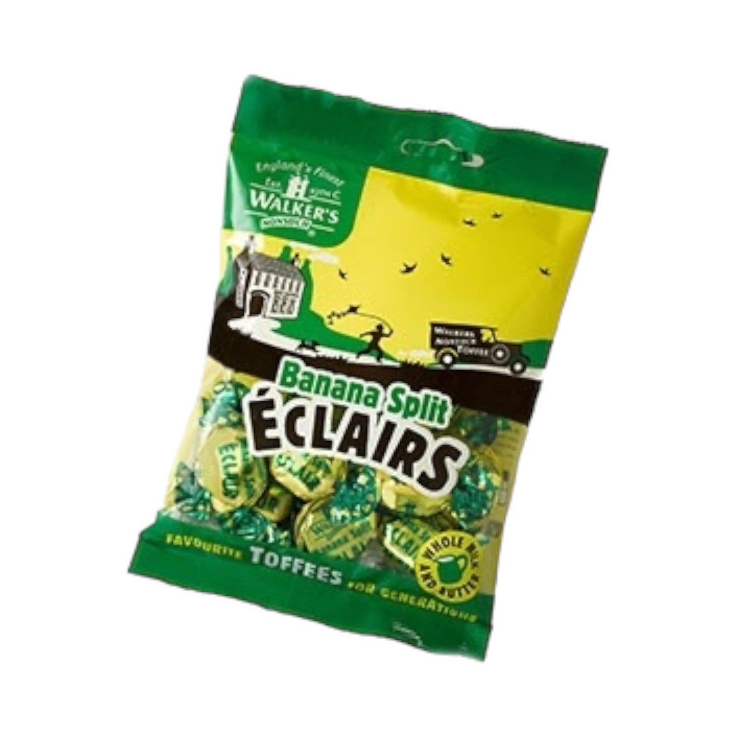 Indulge in Walker's Nonsuch Banana Split Eclairs. Old-fashioned English sweets, these 150g treats are a delicious twist on a classic. Satisfy your sweet tooth with the classic flavor, with a fun and tasty twist.